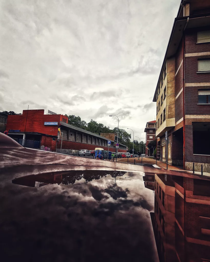 Cada imagen transforma lo cotidiano en una escena mágica y única. Los charcos,cristales.. se convierten en espejos temporales que revelan paisajes urbanos, cielos y personas desde otra perspectiva.